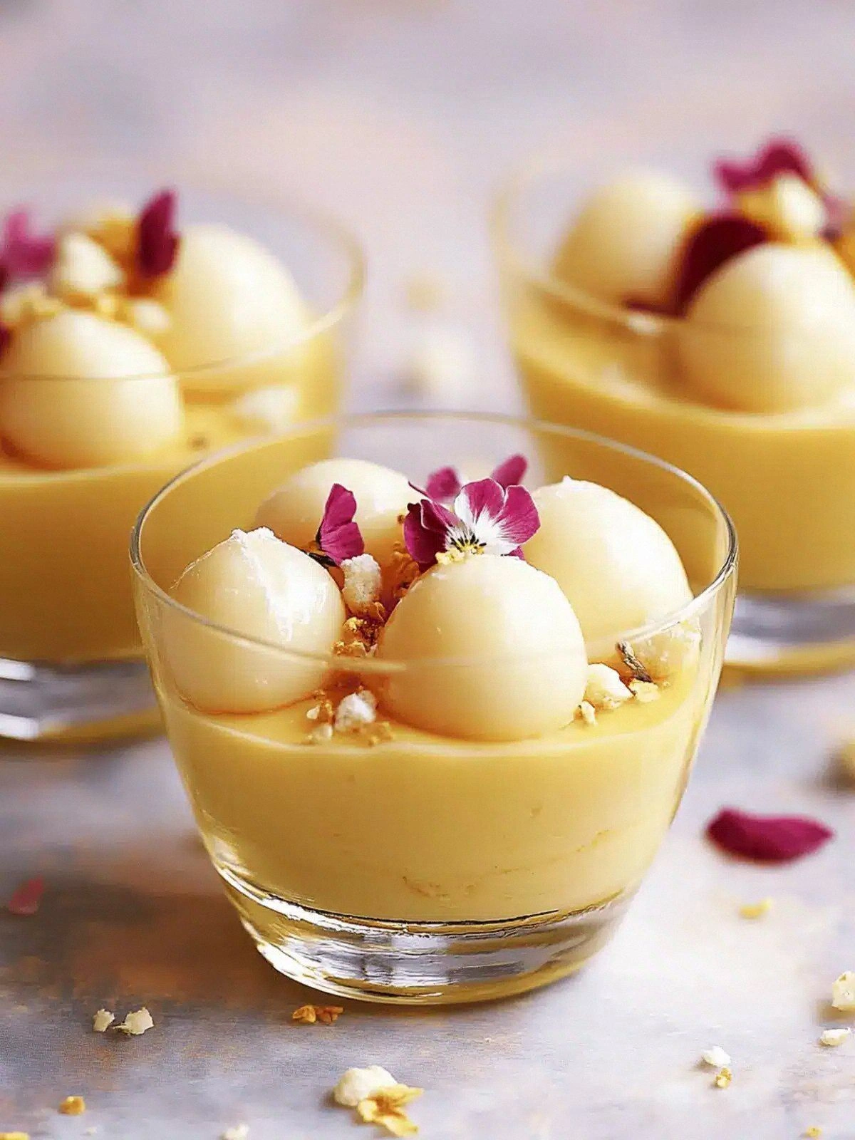 Stir 1 teaspoon of matcha powder into the custard for a subtle green tea flavor and a vibrant color. The earthy matcha pairs well with the sweetness of the Rasgulla. Finish with a sprinkle of matcha on top for a stunning visual contrast.