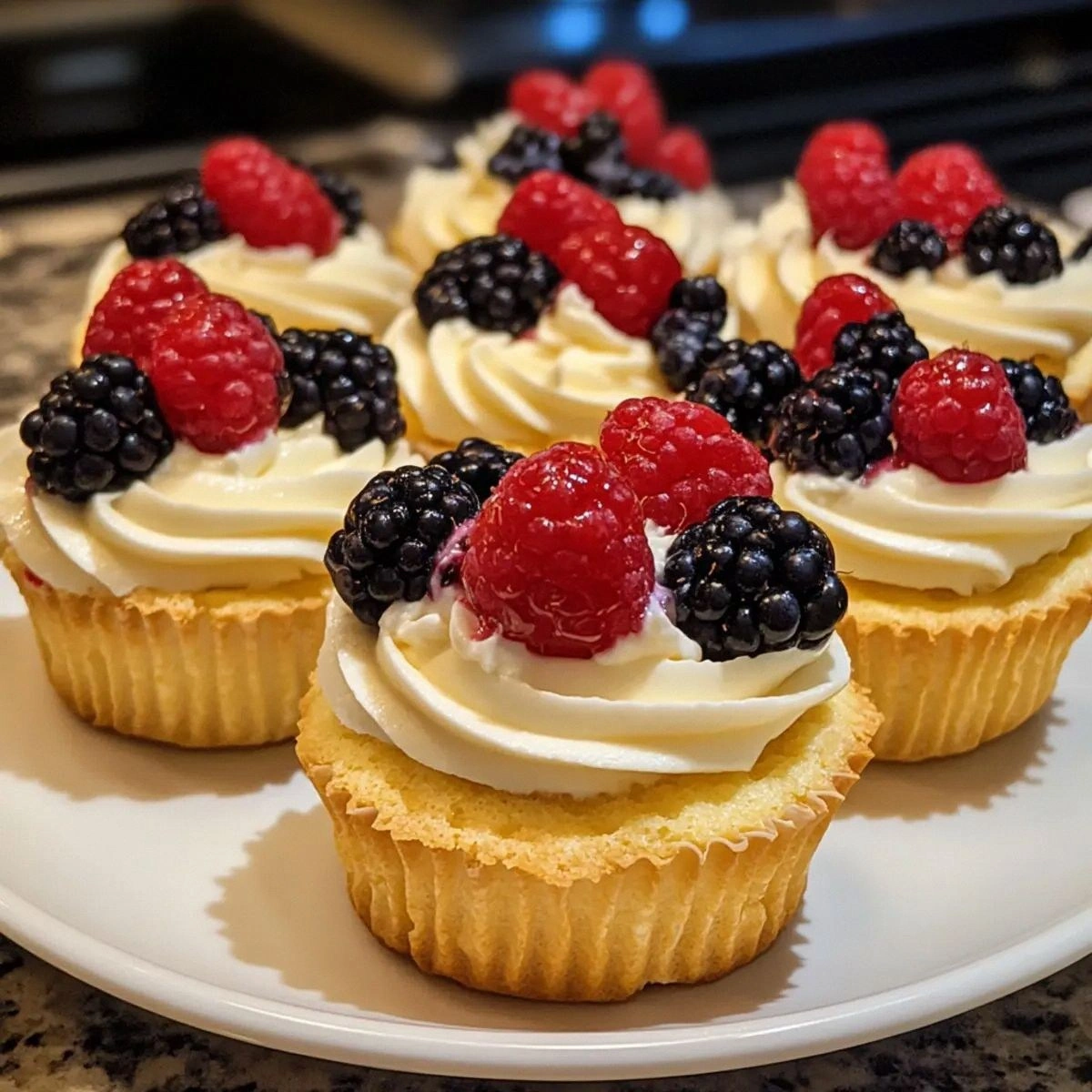 Bake mini vanilla cupcakes and top them with the ricotta‑berry filling, turning them into a dessert that’s both comforting and sophisticated. The cupcakes provide a sweet, crumbly base that complements the creamy topping.