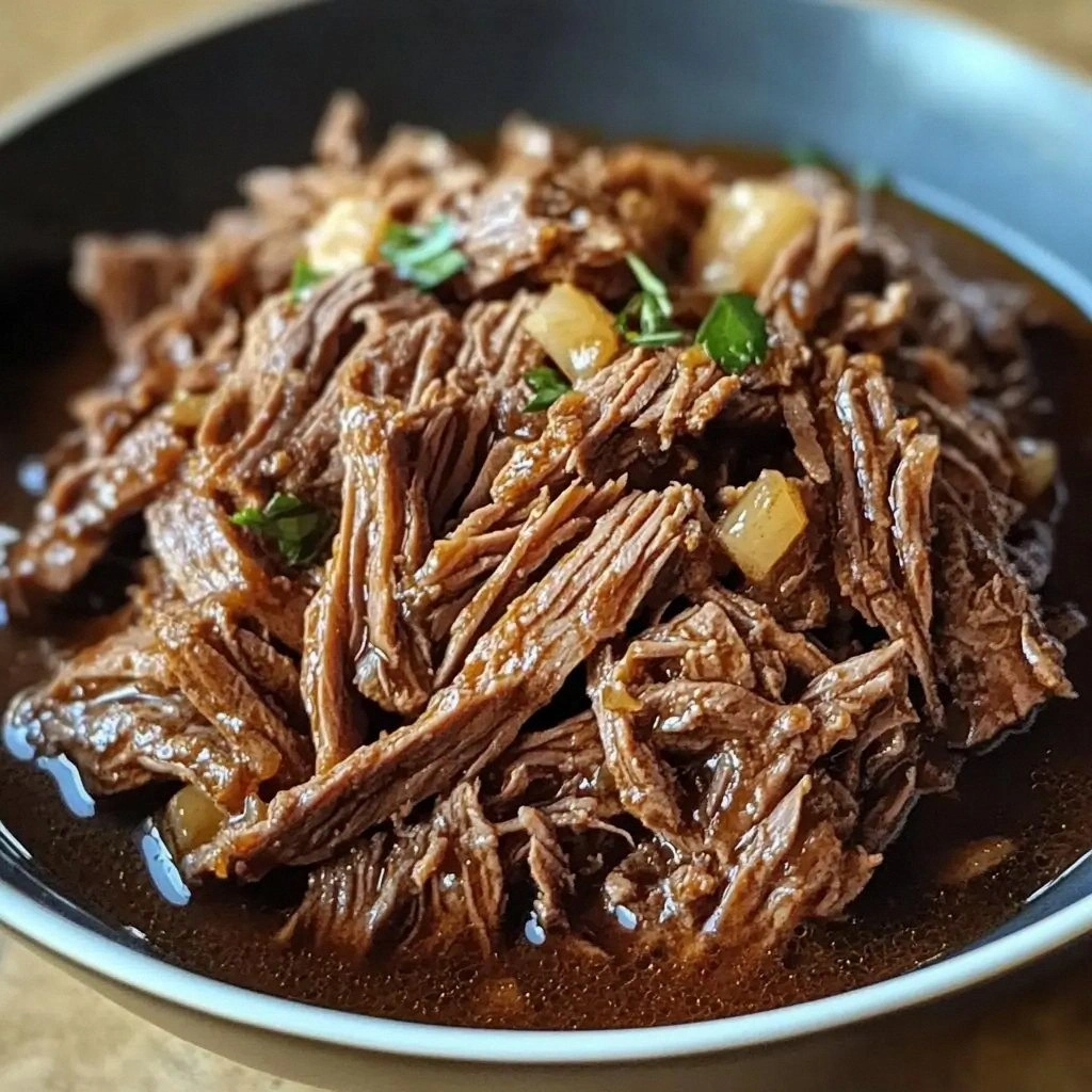 Imagine the first bite: the beef is so tender it practically melts, the sauce thickens into a glossy, caramel‑sweet glaze, and the spices mingle into a harmonious chorus of smoky, savory, and slightly sweet notes. The texture is a paradox: the meat is shredded yet still has a satisfying chew, while the sauce clings to each strand like a velvet coat. The kitchen fills with a heady perfume of garlic, onions, and roasted spices, and you can hear the gentle hiss of the slow cooker as it works its slow magic. Every time I taste it, I’m transported to a Sunday afternoon barbecue, even though it’s just a pot on the stove.